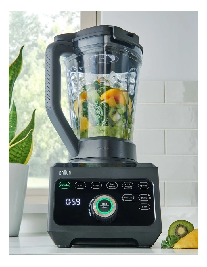 Featuring a sophisticated range of new technologies, the new Braun PowerBlend 9 is a powerhouse of innovative features and intuitive precision. Its iTextureControl functionality delivers perfect blending results and more flexibility. Customize your blends from very smooth to coarse 18 food programs let you automate your texture adjustment in three effortless steps.