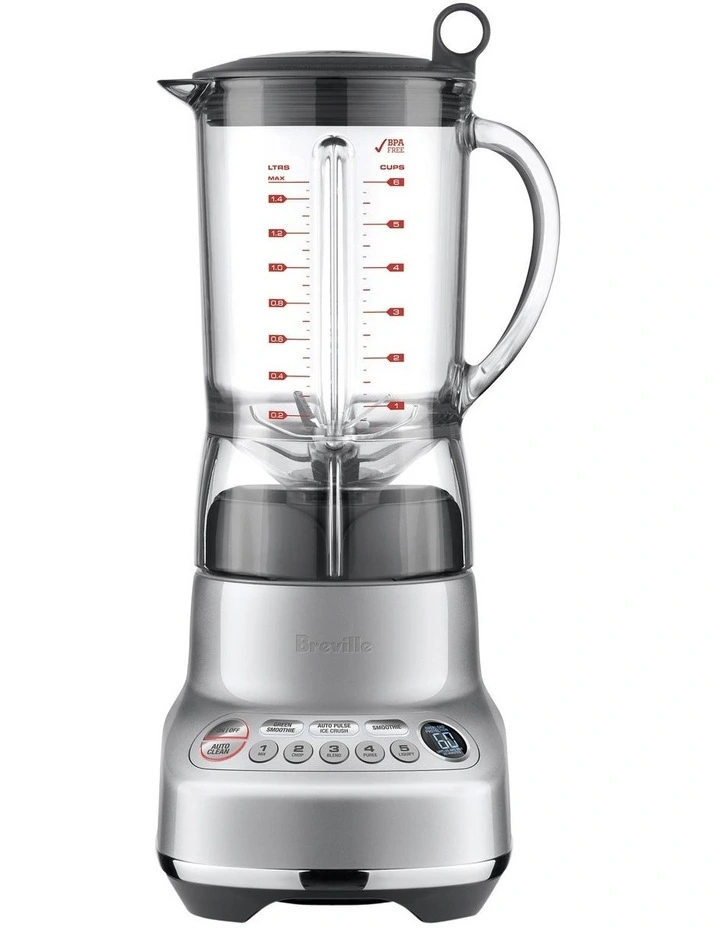 - Construction Materials: Surgical grade serrated ice-crushing blades, Shatterproof Tritan jug (BPA free), Tight Fitting Breville Assist Lid