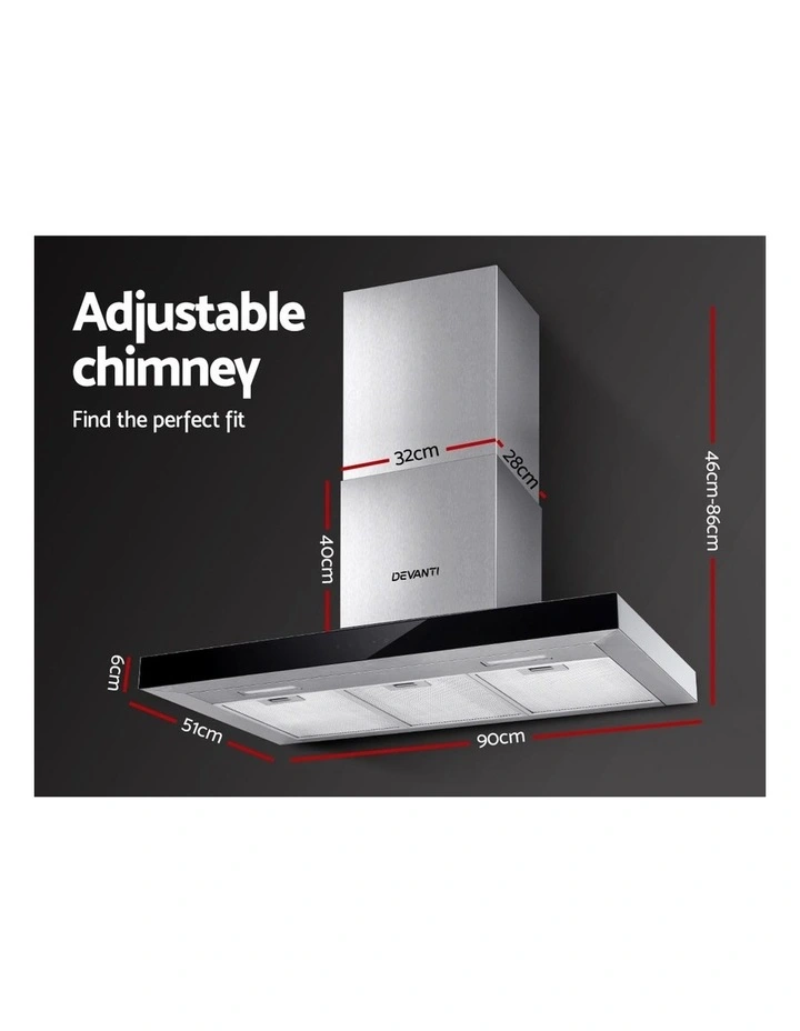 We know how uncomfortable it is to work in a kitchen where there is poor ventilation and odours all around. Let our Devanti stainless steel range hood help reduce unwanted odours and fumes whilst pumping fresh air. It is seamlessly made to fit into your dream kitchen and efficiently remove stifling odours and steam. The range hood features a powerful exhaust system for heavy-duty cooking, an adjustable chimney for the perfect fit, quiet operation, two bright lamps for ample illumination, and 3-speed touch controls to suit your circumstances. Plus, the 5-layer dishwasher-safe aluminium filter effectively filters out oil and fumes and can be removed for cleaning. It even consumes less power and offers safe and reliable operation. Not least, the tempered glass is easy to clean and maintain. A cleaner and healthier kitchen is just a click away. Purchase now.