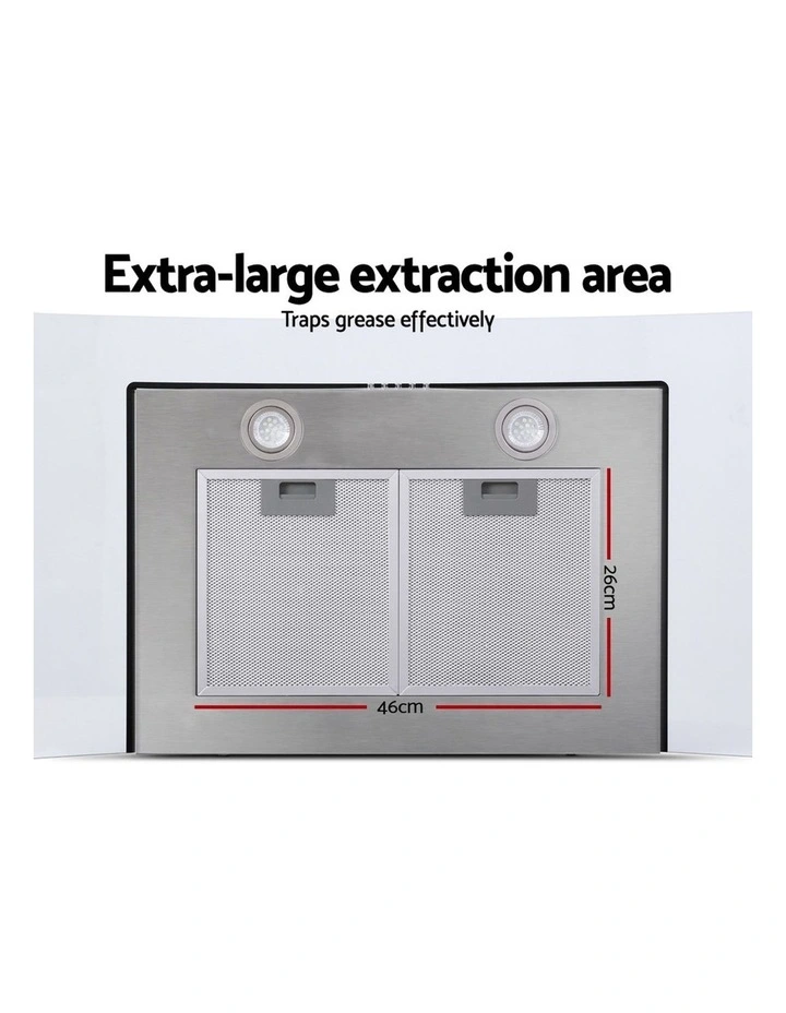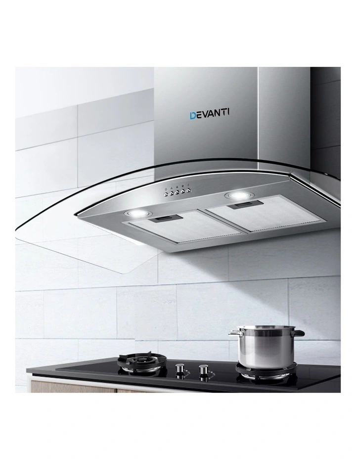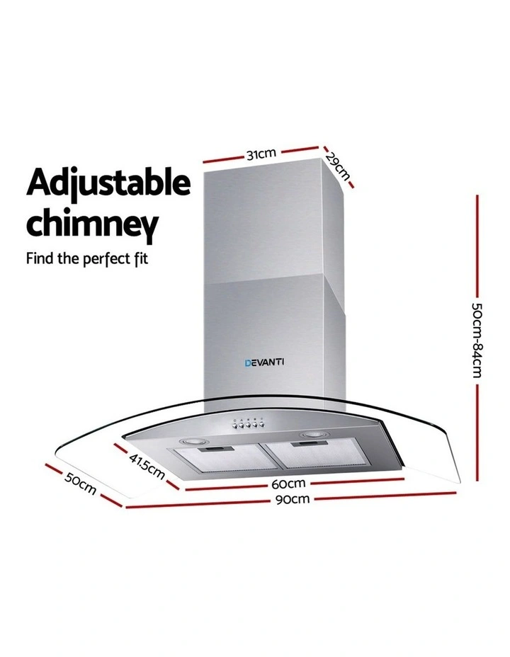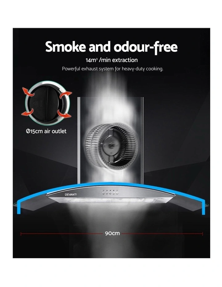 Frying, searing and grilling all the time? Cooking in an enclosed space can deteriorate the quality of air resulting in stifling odours all around. Let our Devanti Wall Mounted 900mm range hood help keep your home smoke and odour-free always. The stainless glass canopy operates quietly, consumes less power and comes with adjustable chimney. It features three selectable speeds to suit your cooking needs. The extra-large extraction area traps grease effectively and ensures a steady upflow. Thanks to a powerful motor and the 5-layer machine washable filter system that effectively filter out oil and fumes for better experience. It even comes with an automatic indicator to inform you that the filter is due for cleaning. Two clear and bright LED lights also provide vivid illumination of your cooking area that you would surely appreciate. Not least, the tempered glass is easy to clean and maintain.
