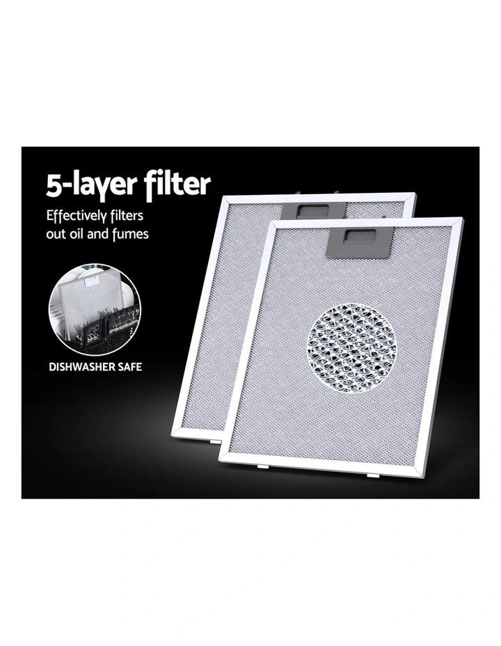 Say goodbye to smoky fumes and unwelcomed cooking odours with the Devanti Range Hood. With its high-performance motors, the black powder-coated steel range hood provides a steady upflow and filtered extraction of fumes and oil to keep your cooktop area clean and fresh after every use. With its 3-speed rocker button switches, the extraction speed can be adjusted to suit the circumstances. Other features include two non-stick 5-layer aluminium filters that are removable and replaceable and two bright 3W LED lamps to facilitate your illuminated cooking. The range hood is wall mounted and the chimney can be adjusted to fit the installation space.