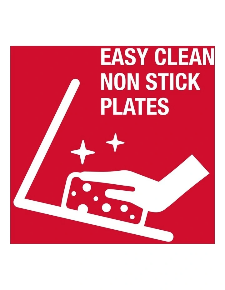 Features: Reduces the fat content by up to 42%; Cooks up to 7 portions; Non-stick plates; Lock-in and removable drip tray; Ready to cook indicator light; Vertical storage capability