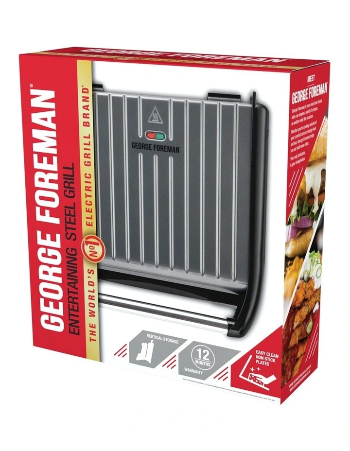 The Entertaining Steel Grill is a fresh new take on a George Foreman classic!Β With its steel housing and polished accents, this is a grill to suit contemporary kitchens.