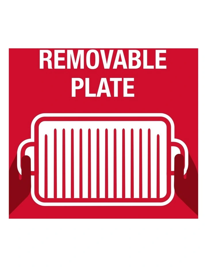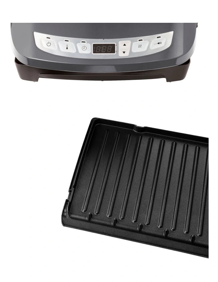 Features: Smart probe technology automatically detects temperature & cooks to perfection; Sear function with intense 260°C heat locks in flavour; Dual LED display; Digital timer; Variable temperature function; Auto shut-off; Removable dishwasher-safe plates