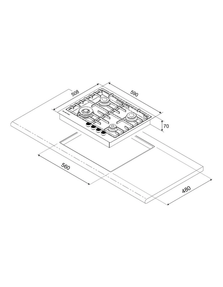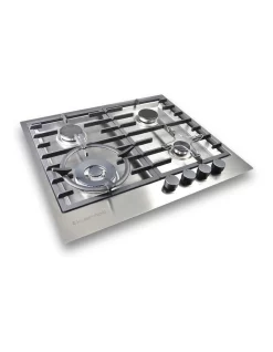 60cm Stainless Steel flush mount, built in gas cooktop with commercial grade, cast iron, pan supports. 4 burners including a 3.5kW triple crown wok burner and Flame Safe protection. 5 year warranty