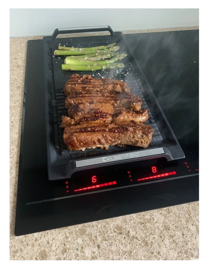 The amazing Chef Function allows the cooking zones from left to right to simultaneously operate at levels 2,6 and 9 to replicate a professional restaurant cooktop as you create culinary wonders with your new induction cooktop in your own kitchen. Safety features of this cooktop include Individual Residual Heat Indicators showing which surfaces are hot to touch, Auto-Stop (in case of accidental start, long absence, overflow, or overheating), Voltage Power Guard advanced dirty power protection technology and a child safety lock.