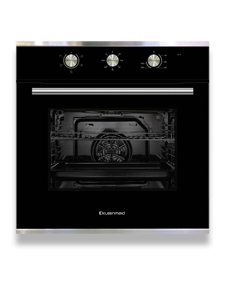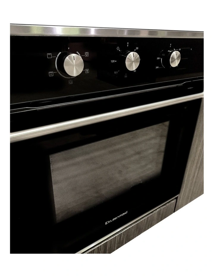 The Kleenmaid KCOMF6010 is an XL 75L 60cm Black Glass Multifunction fan forced oven. It has 5 cooking functions including convection, defrost and radiant grilling, a mechanical controller with timer and fully removable door with 3 sheets of glass.