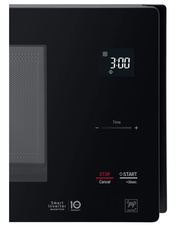 Sleek Minimalist Design.ย A single piece of tempered glass on the front door creates a modern, stylish appearance. Reduce cooking and reheating time with up to 1200W of power, compared to a 1000W LG conventional microwave oven. The Anti-Bacterial EasyClean interior coating makes cleaning simple and convenient. Just a few wipes are all it takes to clean the microwave interior. The coating eliminates 99.99 percent* of harmful bacteria from the surface.