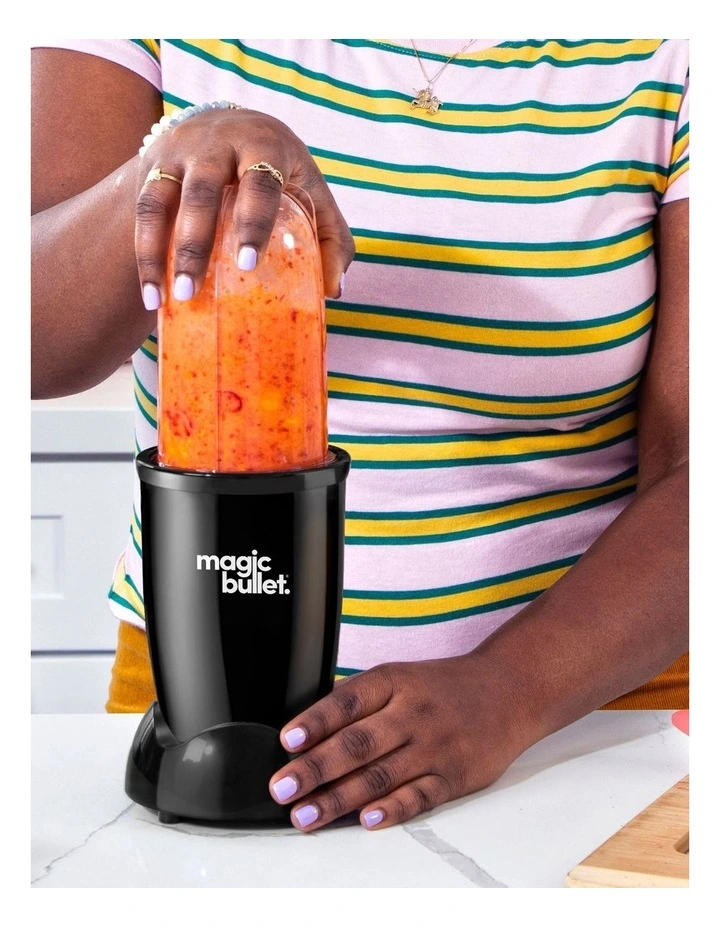 The Magic Bullet chops, mixes, blends, whips, grinds and more. Effortlessly create your favourite meals and snacks like smoothies, omelets, sauces and dips in basically no time for less stress and way more fun in the kitchen. Includes portable cups and to-go lids that let you take your creations with you on the road.Β