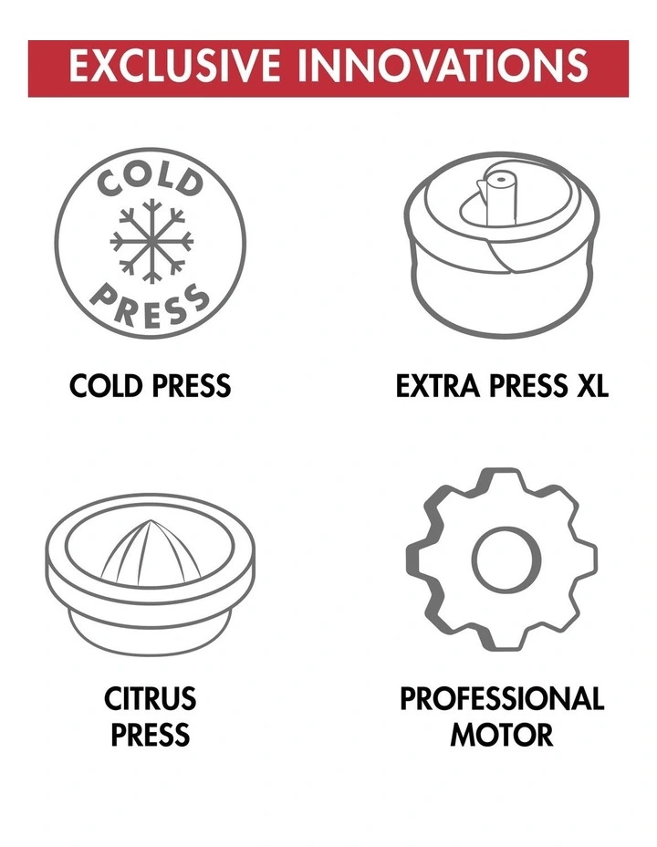 - Extra Press XL: For deliciously smooth juices, milks and smoothies