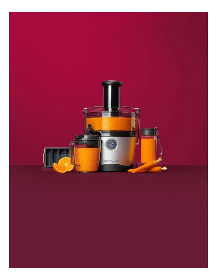 Need more specifics? The NutriBullet Juicer Pro is equipped with a 3-inch feed chute and dual size food pusher to accommodate produce of all sizes, minimizing prep time and giving you full control over every ingredient. It has Low, High and Turbo speeds to power through any type of produce. This juicer is designed for easy cleanup, with a self-contained pulp basin, no-drip spout, and dishwasher safe components. It also comes with its own support staff to simplify your juice routine: a pour & store pitcher and two freezer trays for make-ahead convenience, plus glass to-go bottles to take your creations on the run.