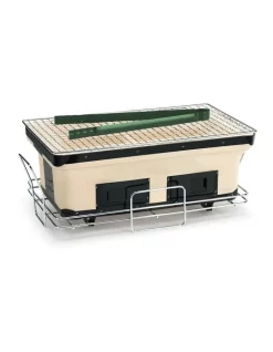 Outlet 💯 Healthy Choice Portable Hibachi Tabletop Grill Dual Charcoal BBQ Chambers In Beige 😍