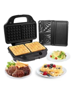 Outlet 🎉 Healthy Choice Sandwich Press With 3 Interchangeable Plates In Silver 😉
