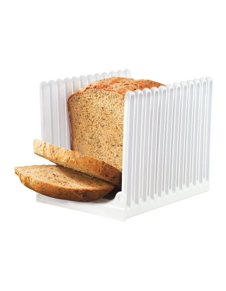 Ensures even slicing, suits all bread types, fits bread up to 13cm wide, folds away for compact storage.