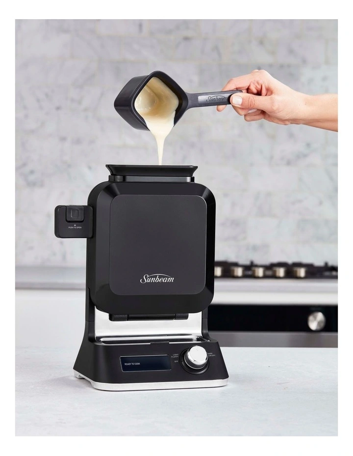 For delicious sweet and savoury treats the Shade Select Vertical Waffle Maker effortlessly creates crispy, thick and fluffy waffles, so simply and easily without the mess Just select the desired shade for your waffle (light and fluffy to dark and crispy) and pour in your mixture. The auto-detection feature will automatically begin counting down, displaying the time until the waffle will reach the perfect texture. Simple! The upright design is a vertical advantage, no more drips or splashes. Just pour in the batter, set and forget! It couldnt be easier to make your weekend a classic with delicious at-home waffle brunches.
